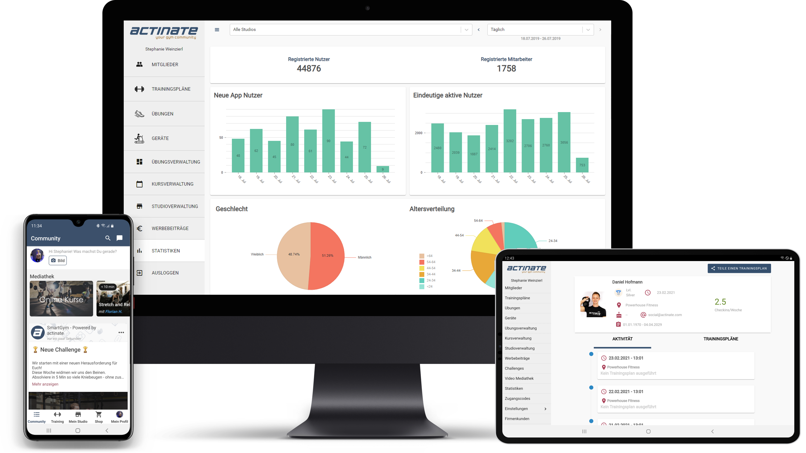Revolutionäre Fitness: Umsatz steigern, Kosten senken, Mitglieder binden Actinate unterstützt Fitnessstudios bei der digitalen Transformation, indem es innovative Konzepte anbietet, um Umsätze zu steigern, Ausgaben zu optimieren und die Mitgliederbindung zu erhöhen. Mit der Studio-App von Actinate können Fitnessstudios ihren Mitgliedern einzigartige Funktionen bieten, um sie aktiv zu halten und neue Umsatzmöglichkeiten zu erschließen.