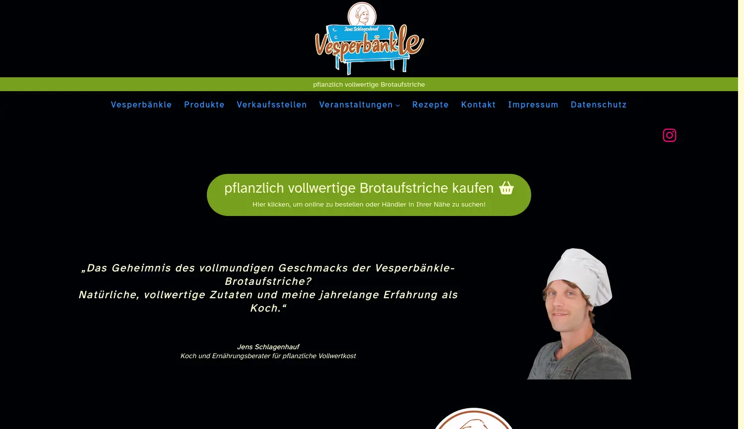Pflanzlich vollwertige Brotaufstriche – 100% Geschmack, 0% Kompromisse. Vesperbänkle produziert pflanzlich vollwertige, vegane und glutenfreie Brotaufstriche ohne Zuckerzusatz und Palmfett, basierend auf den Rezepturen von Koch Jens Schlagenhauf.