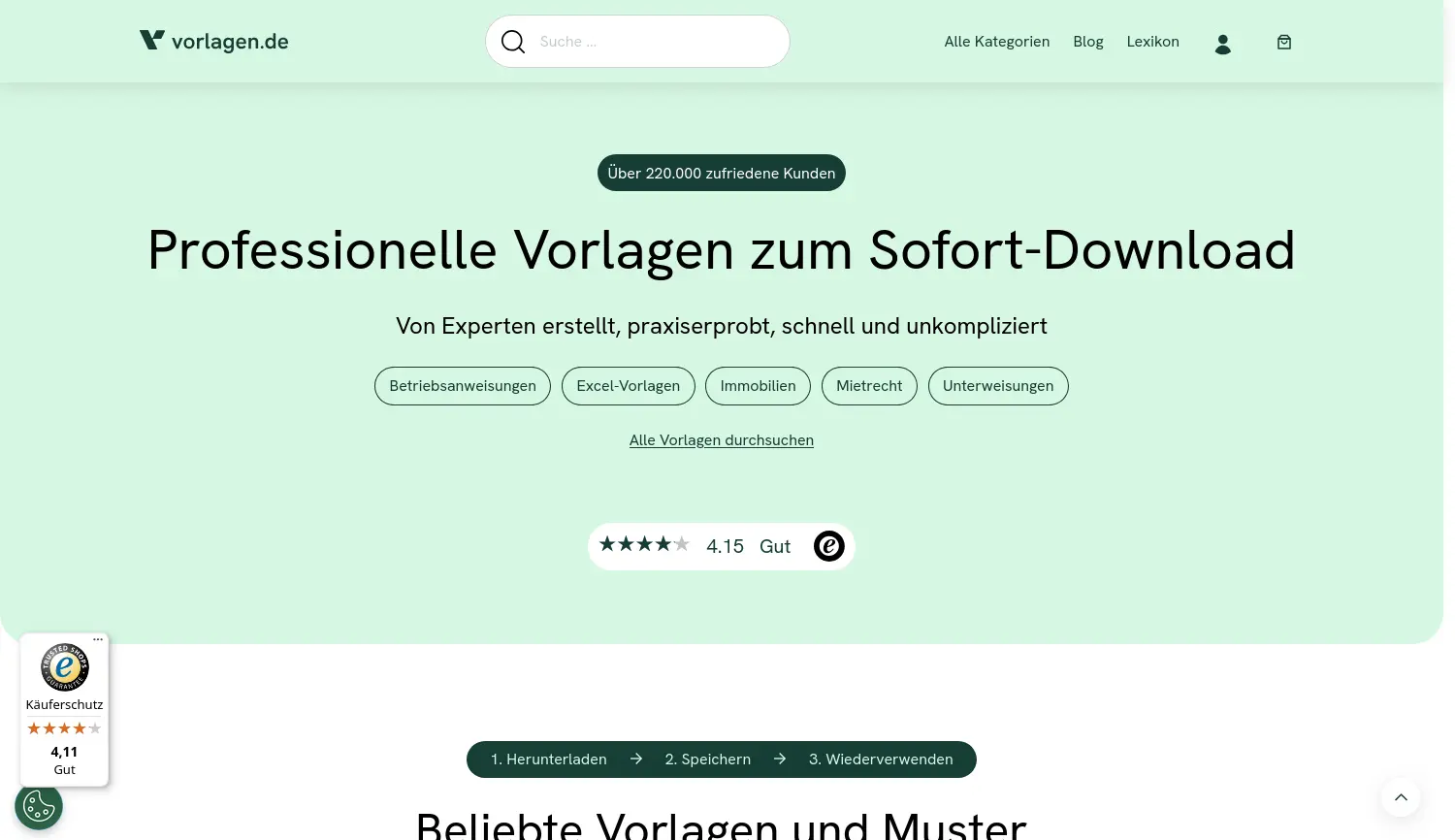 Professionelle Vorlagen, Muster und Verträge zum Sofort-Download. Vorlagen.de ist das Download-Portal für über 7.000 professionelle Muster, Verträge, Vorlagen und Software zum unkomplizierten Sofort-Download seit 2002.