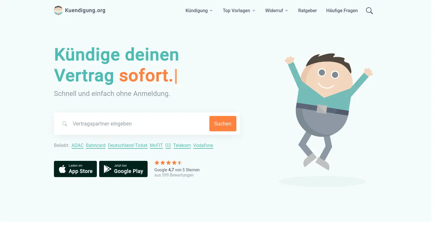 Verträge jetzt clever online kündigen. kuendigung.org bietet eine Online-Plattform zur Erstellung und zum direkten Versand von Kündigungsschreiben für Verträge aller Art.