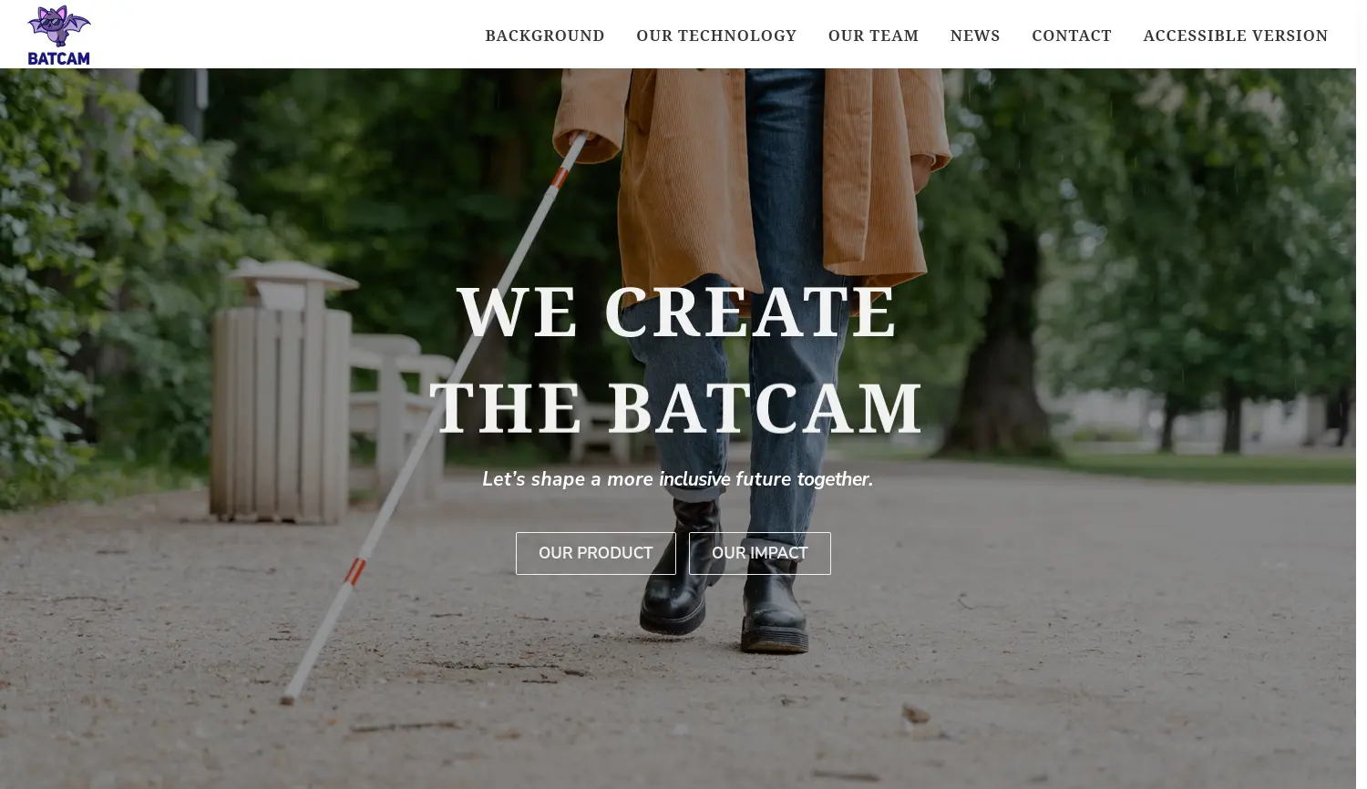 Fledermaus-Vision für gute Orientierung und eine inklusivere Zukunft. Batcam entwickelt eine stilvolle Brille mit Stereokameras und Vibrationsfeedback, um blinde und sehbehinderte Menschen vor überirdischen Hindernissen zu warnen, die der Blindenstock nicht erfassen kann.