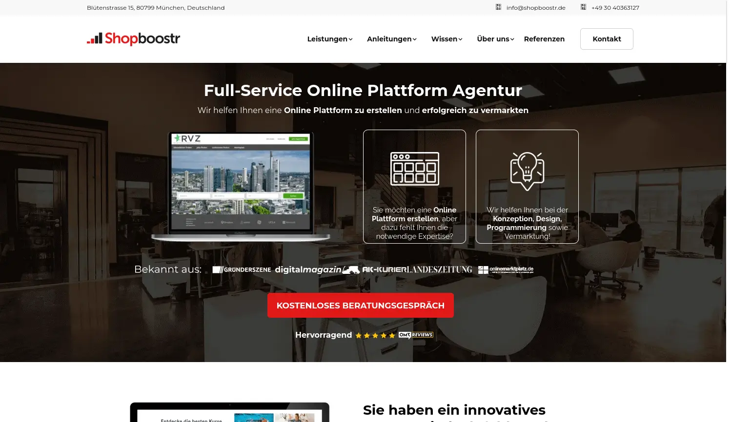 Die Full-Service Agentur für die Entwicklung erfolgreicher Online Plattformen und Marktplätze. Shopboostr ist eine spezialisierte Full-Service Agentur, die Unternehmen bei der Konzeption, Entwicklung und erfolgreichen Vermarktung von Online Plattformen und Marktplätzen unterstützt.