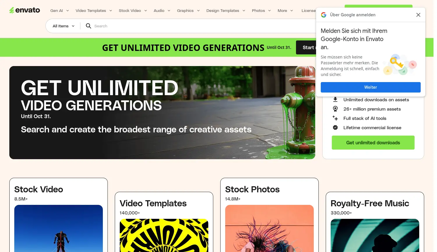 Unbegrenzte kreative Assets an einem Ort. Envato Elements bietet ein All-in-One-Abonnement für unbegrenzte Downloads von über 26 Millionen Premium-Kreativ-Assets, einschließlich KI-Tools zur Content-Generierung.