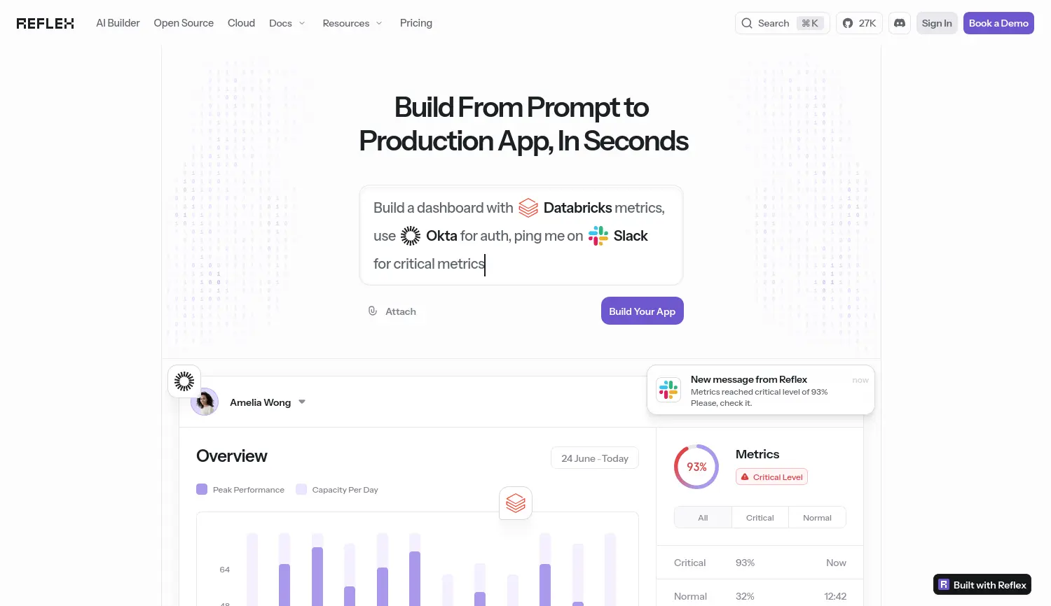 Von der Eingabe zur Produktions-App in Sekunden. Reflex ist eine Plattform und ein Open-Source-Framework, mit dem Entwickler vollständige Webanwendungen in 100% reinem Python erstellen können.