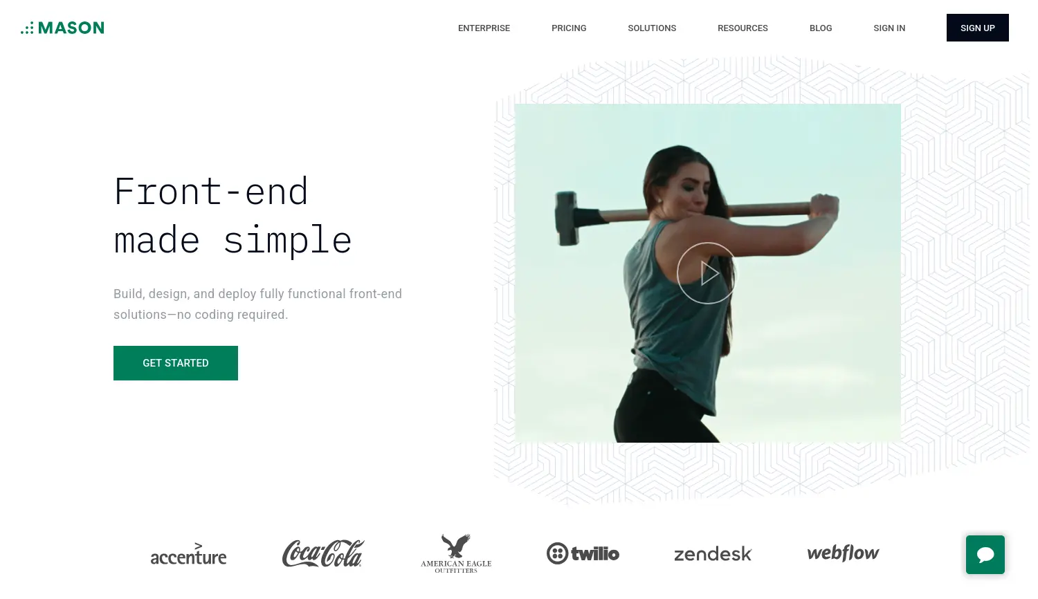 Front-End made simple: Visuelles Erstellen, Designen und Bereitstellen von funktionalen Front-End-Lösungen. Mason ist eine Front-end-as-a-Service (FEAAS) Plattform, die Teams das visuelle Erstellen, Designen und Bereitstellen voll funktionsfähiger Front-End-Lösungen ohne jeglichen Code ermöglicht.