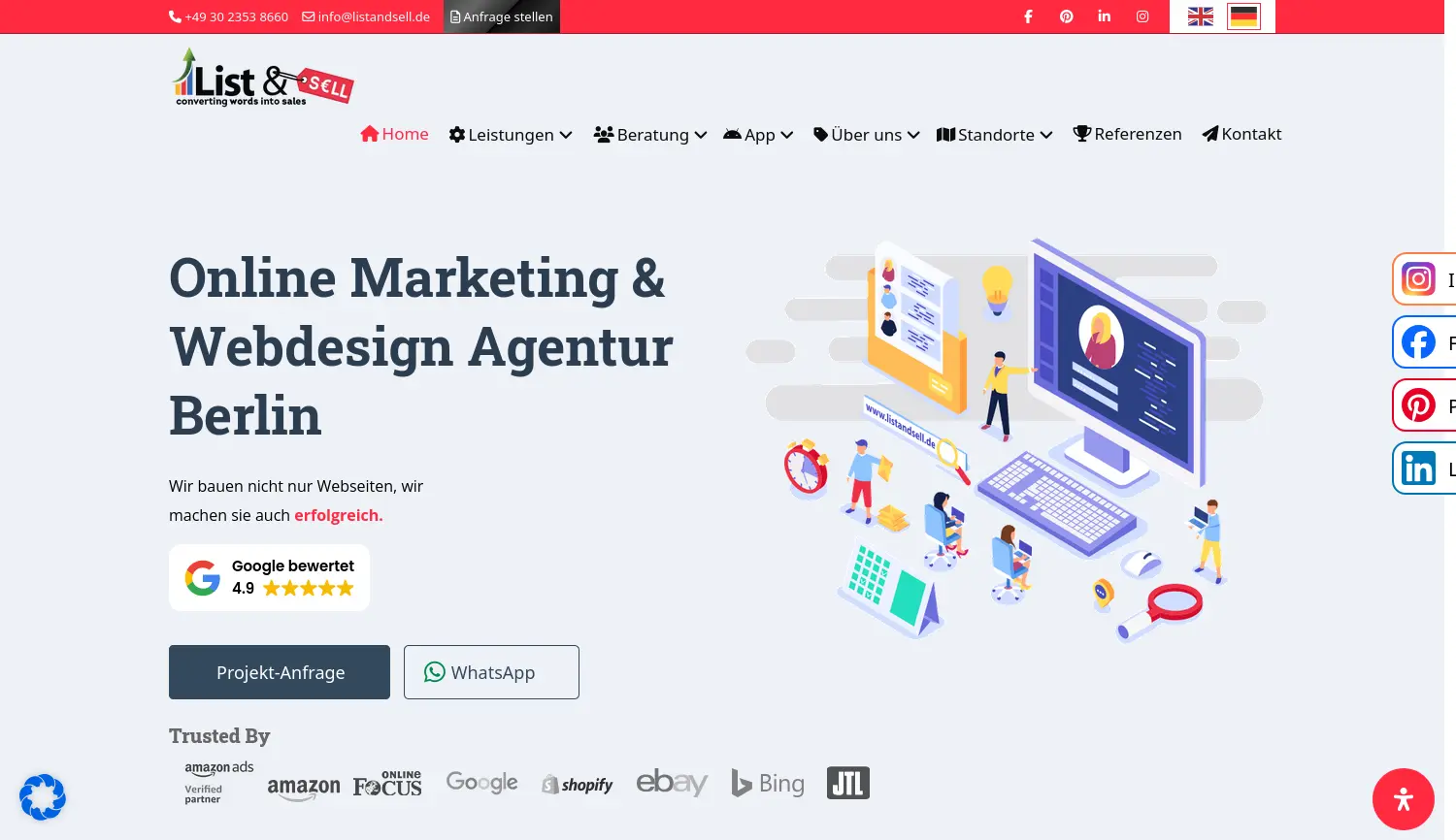 Die Fullservice Agentur für erfolgreiches Webdesign, Online Marketing und E-Commerce. ListandSell ist eine Fullservice Agentur aus Berlin, die sich auf erfolgreiches Webdesign, umfassendes Online Marketing, E-Commerce-Lösungen und App-Entwicklung spezialisiert hat.