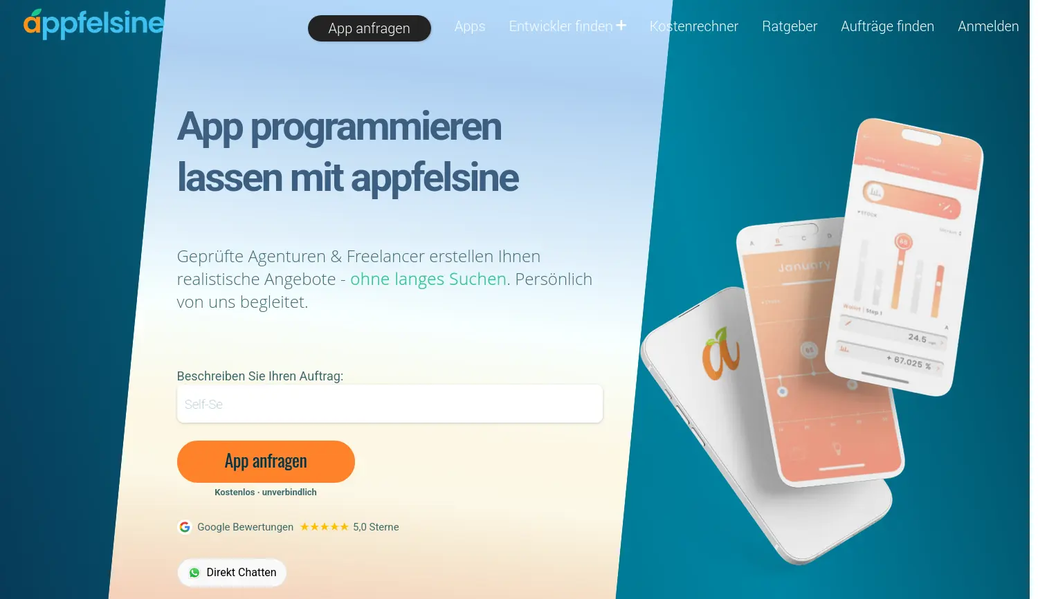 App programmieren lassen | Geprüfte Agenturen & Freelancer finden. Appfelsine vermittelt und begleitet Kunden bei der Programmierung ihrer individuellen Apps und Softwarelösungen durch geprüfte Entwickler und Agenturen.