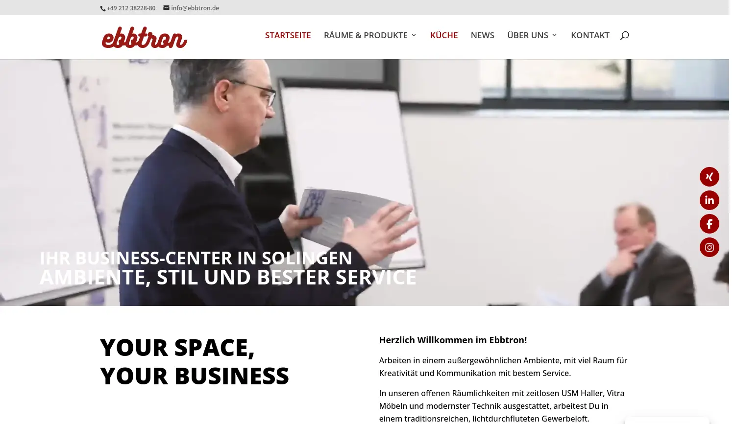 Ihr Business-Center in Solingen Ebbtron ist ein Business Center in Solingen, das Coworking-Plätze, private Büros, Konferenzräume und Eventflächen in einem stilvollen Gewerbeloft anbietet.