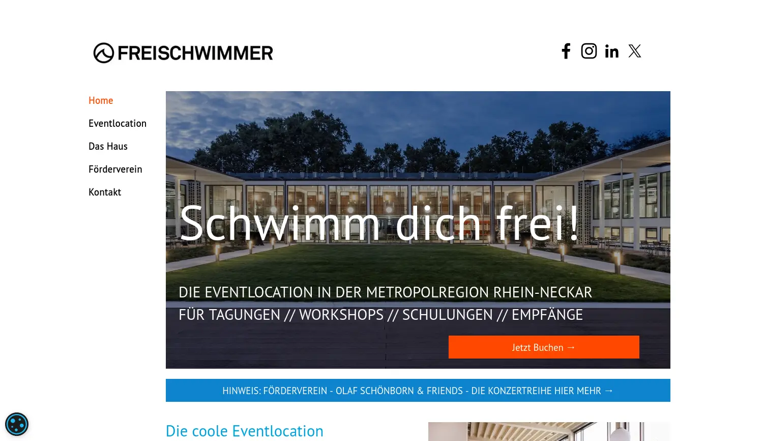 Die Eventlocation in der Metropolregion Rhein-Neckar für Tagungen, Workshops und Empfänge. Der Freischwimmer ist eine denkmalgeschützte Eventlocation in Ludwigshafen, die multifunktionale Räume für Tagungen und Workshops in der Metropolregion Rhein-Neckar anbietet.