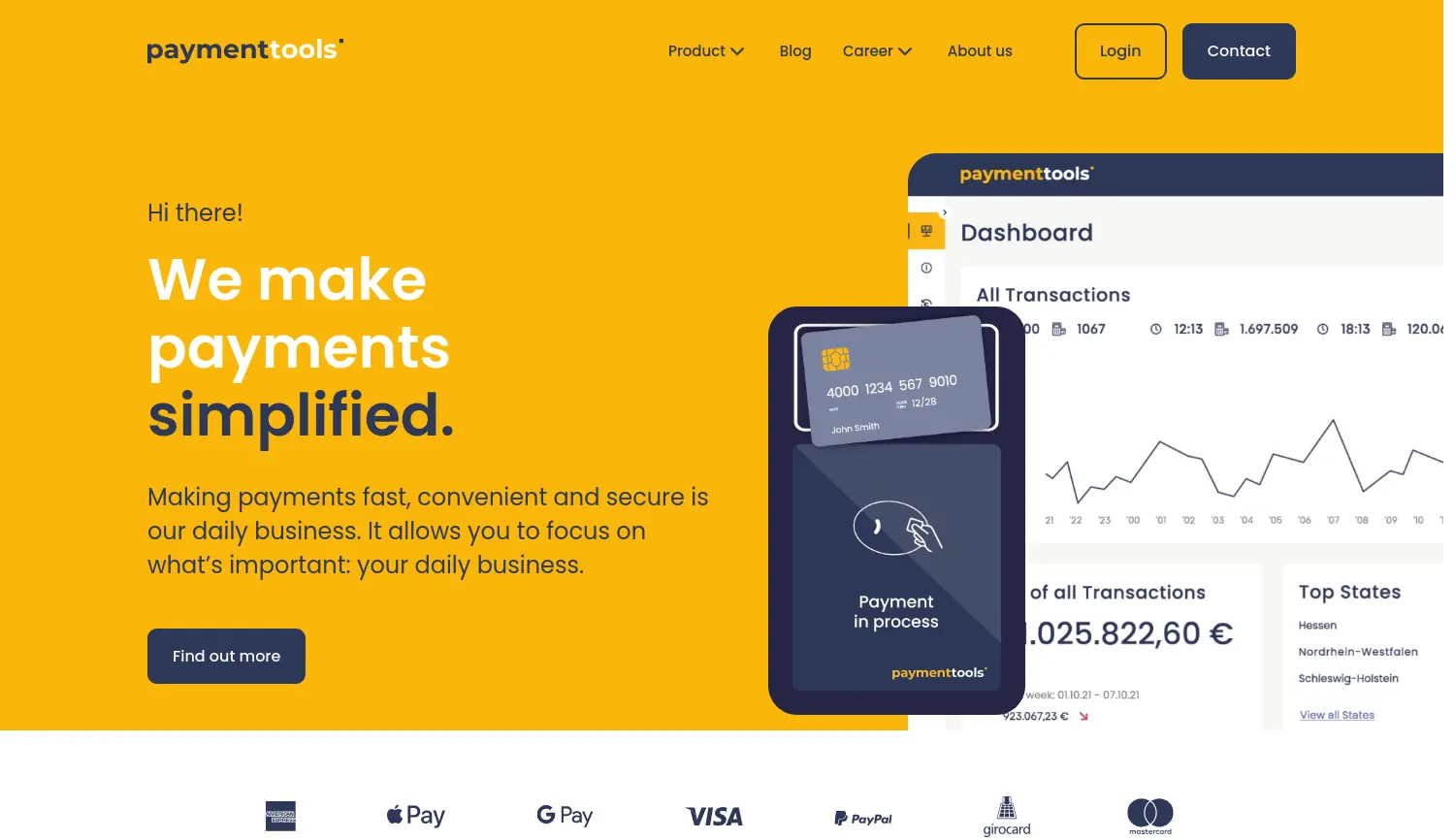 Wir vereinfachen Zahlungen. Paymenttools bietet Einzelhändlern eine flexible Omnichannel-Payment-Plattform zur Vereinfachung, Sicherung und Transparenz ihrer Zahlungstransaktionen.